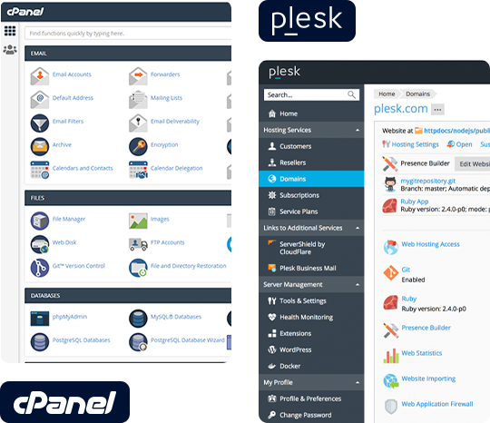 Easily manage your website, emails, and files with powerful, user-friendly control panels: